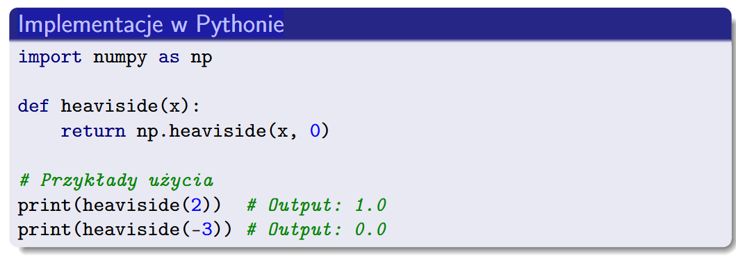 Funkcja skokowa (Heaviside’a) jest jedną z podstawowych funkcji aktywacji w modelach neuronowych.